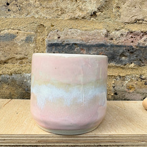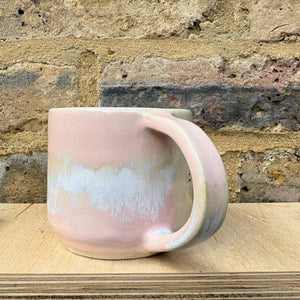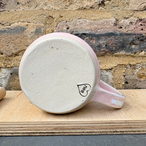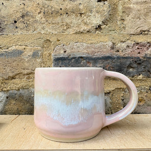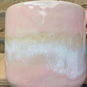 Pale Pink Raspberry Ripple glaze and imprinted with words "fuck off i'm reading" on side