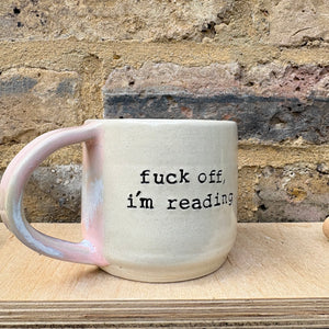 “Fuck off i'm reading" mug (medium - Pale Pink Raspberry Ripple)