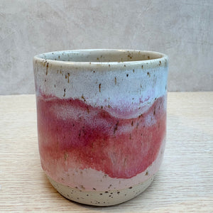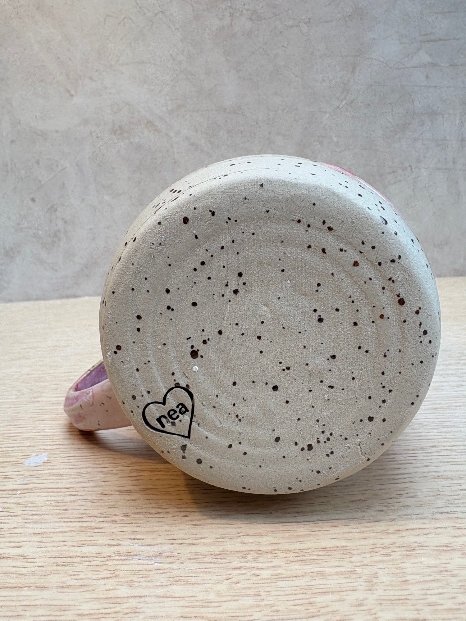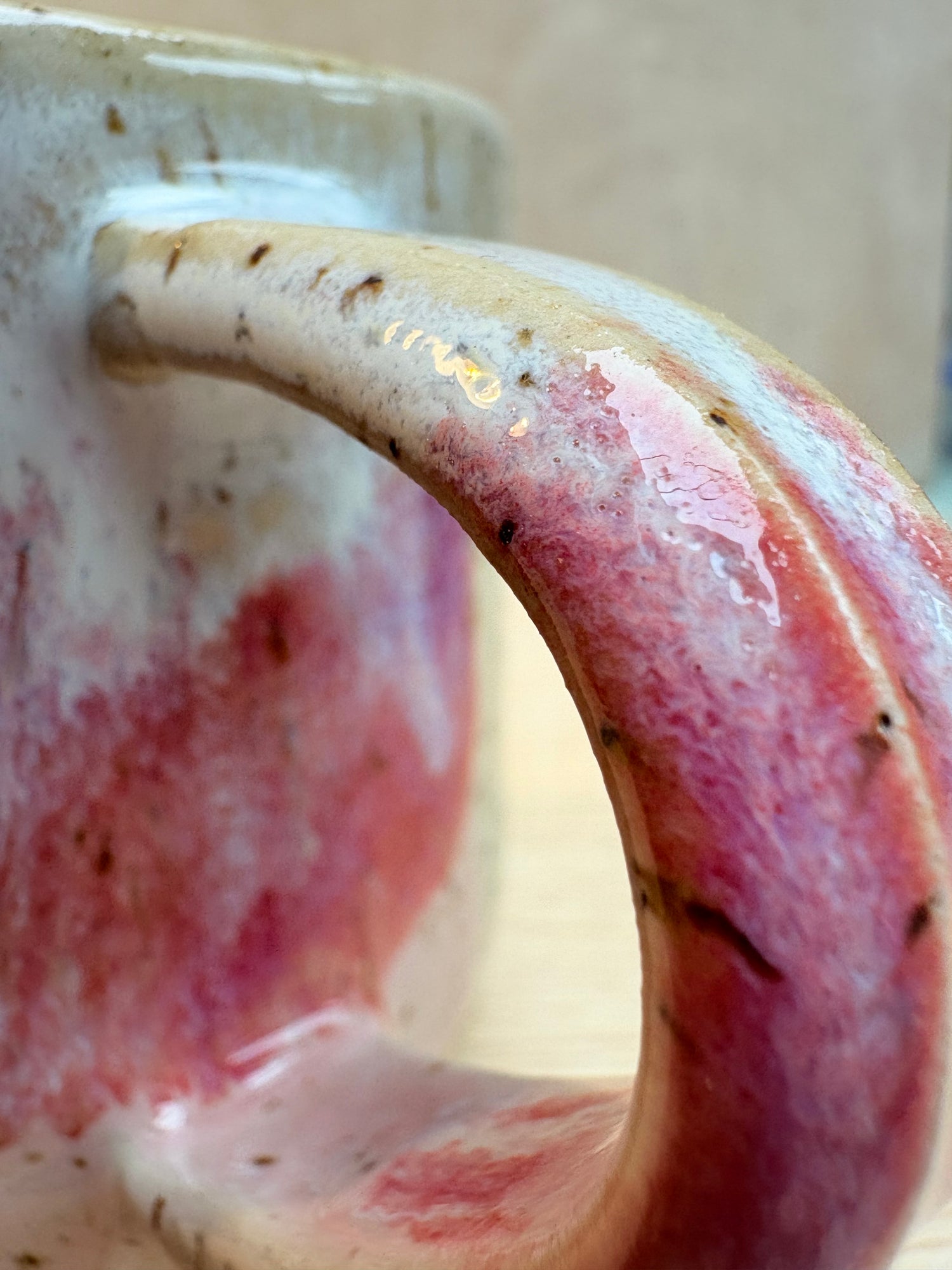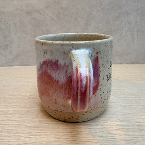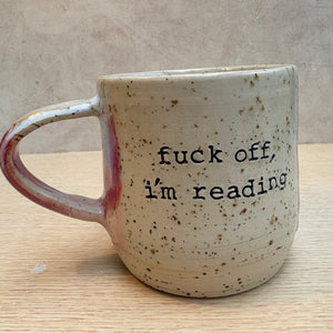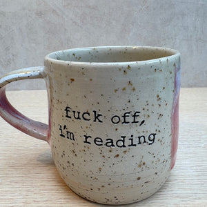 Pink Raspberry Ripple glaze and imprinted with words "fuck off i'm reading" on side