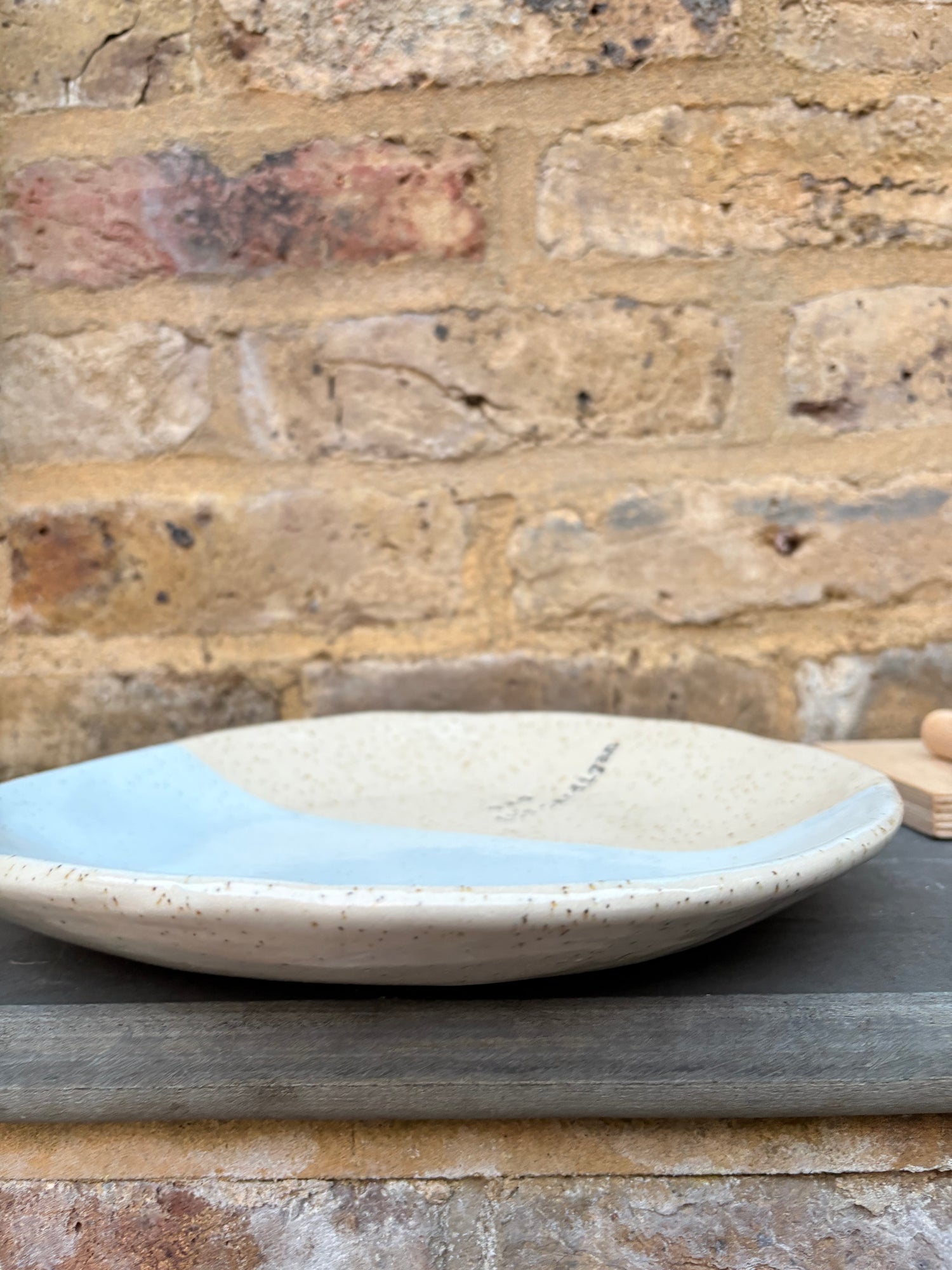 Your custom plate will be made to order from scratch (wheelthrown, trimming, drying out for a week or two, first firing, glazing, second firing, off in the post to you!) so the process takes about 3 weeks.