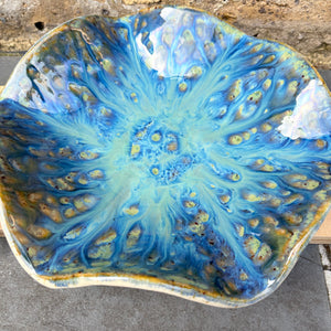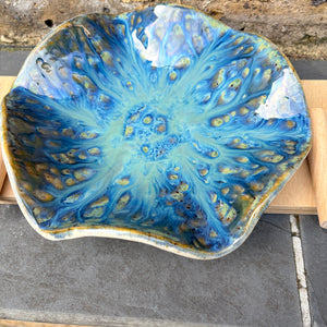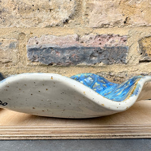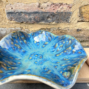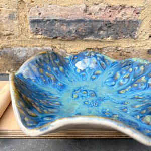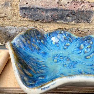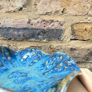 Made from flecked stoneware clay and glazed in: Peacock Blue