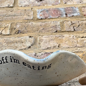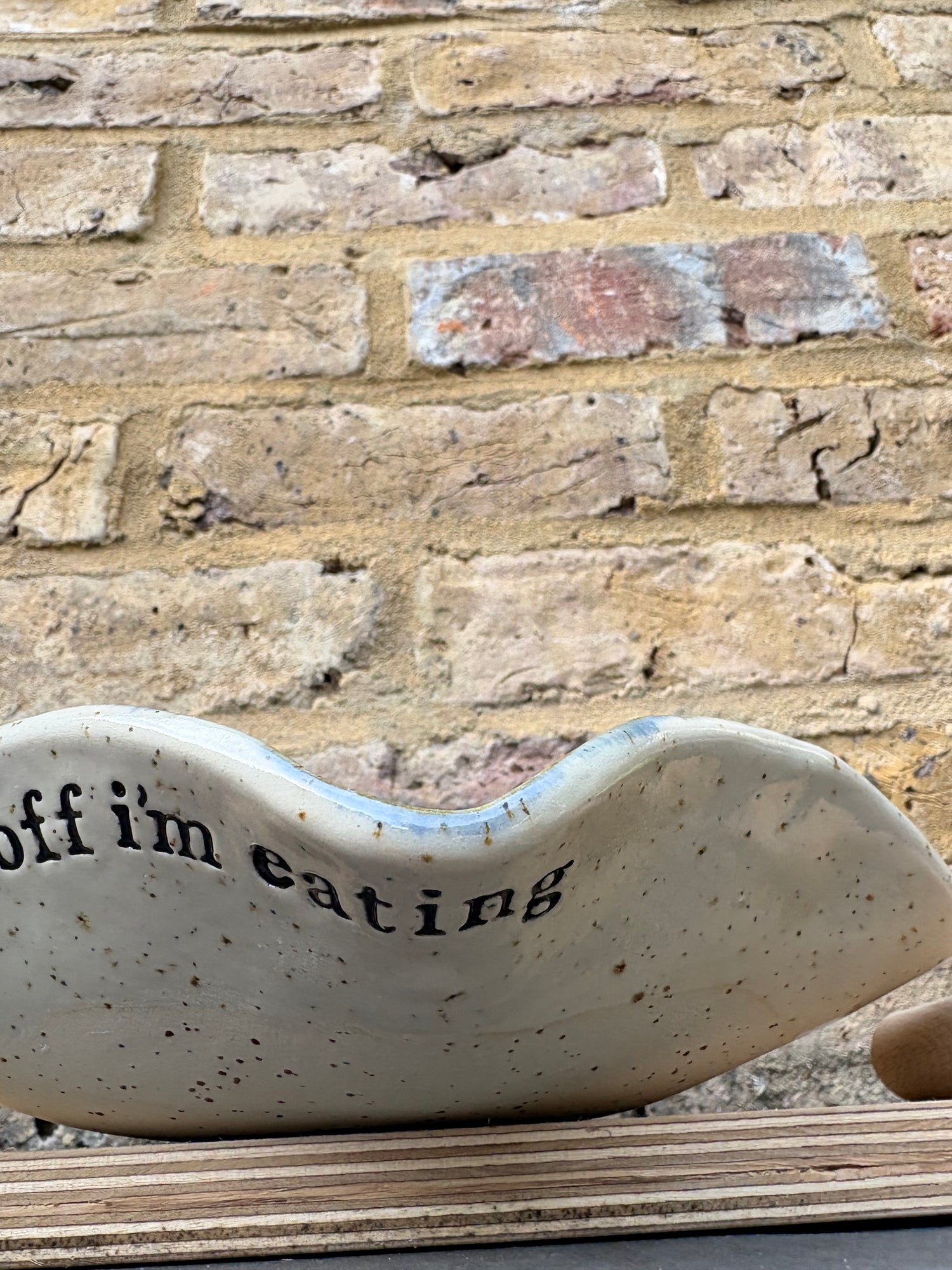This handmade ceramic dish features a relatable message to make the reader smile. Because sometimes you don't want to eat around the table with the family making dinner conversation, sometimes you just want to eat your food, on your own, in silence, with interruptions 🤣
