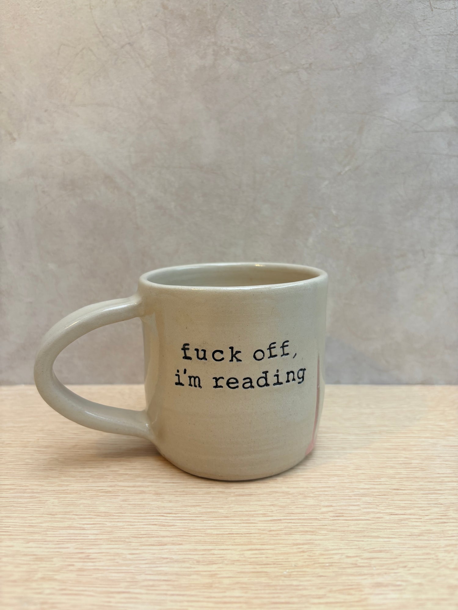 “Fuck off i'm reading" mug (Pale Pink Grooves)