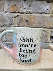 "shhh...you're being too loud" mug (pink/lilac)