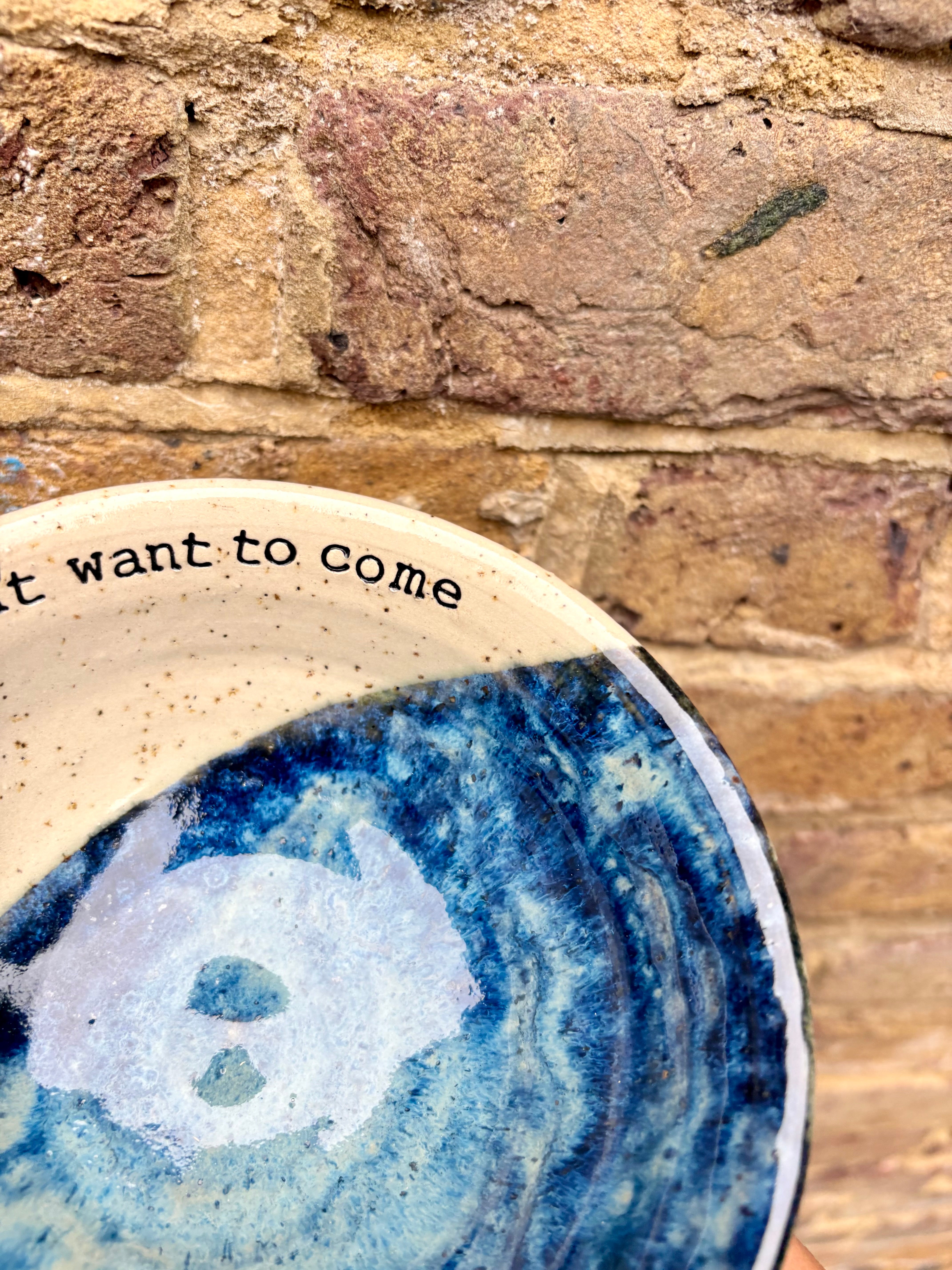 "sorry i'm late, I didn't want to come" bowl (blue)