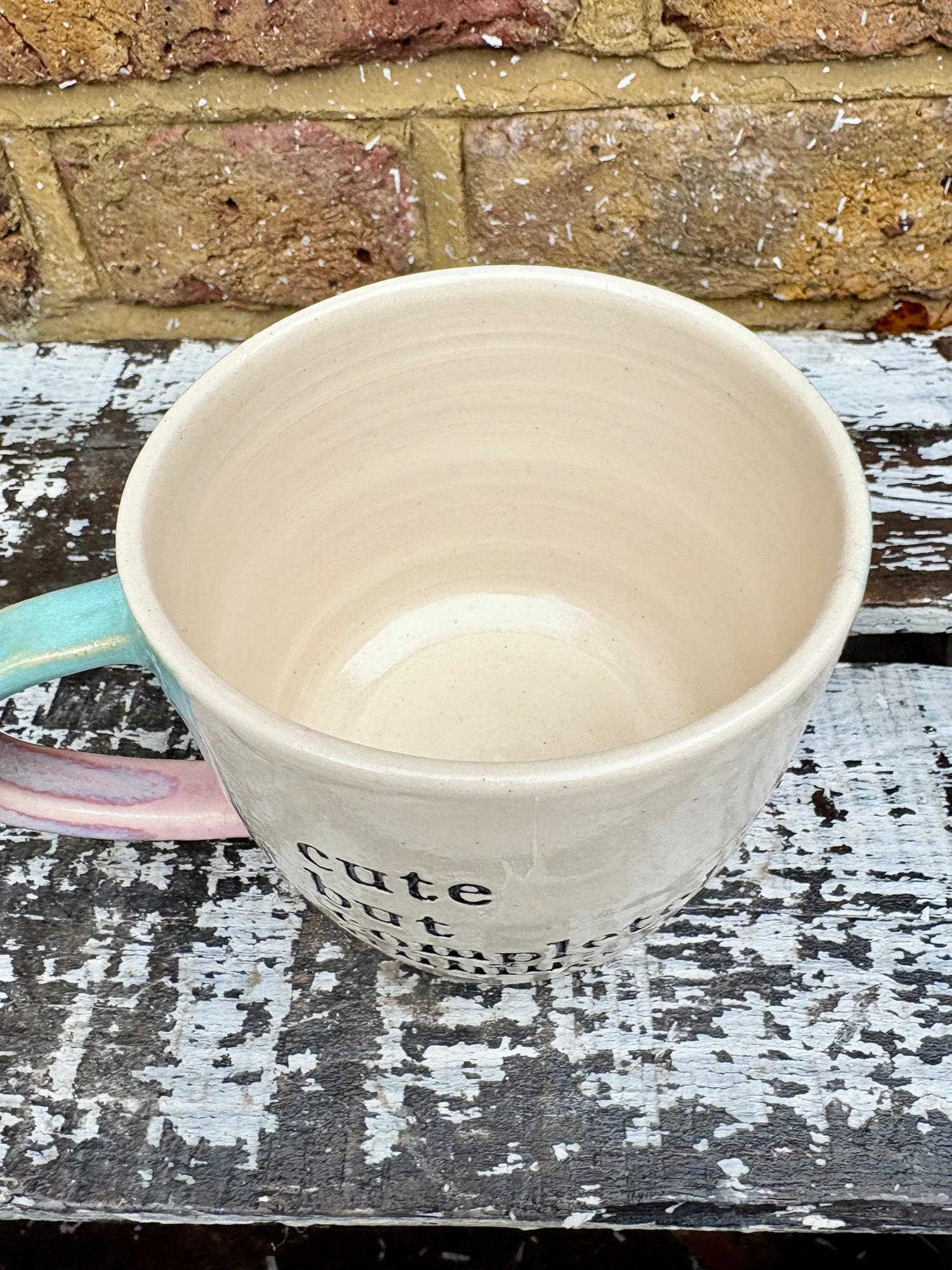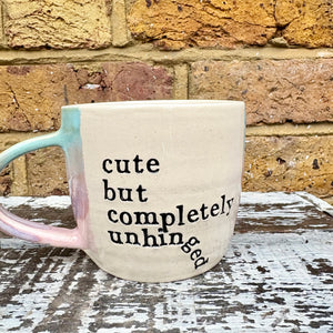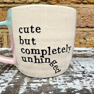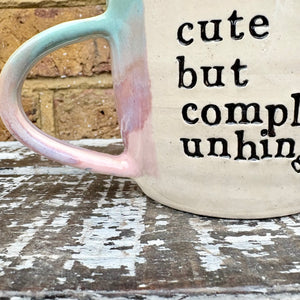 Gorgeous handmade wheelthrown "cute but completely unhinged" mug