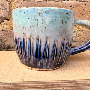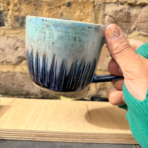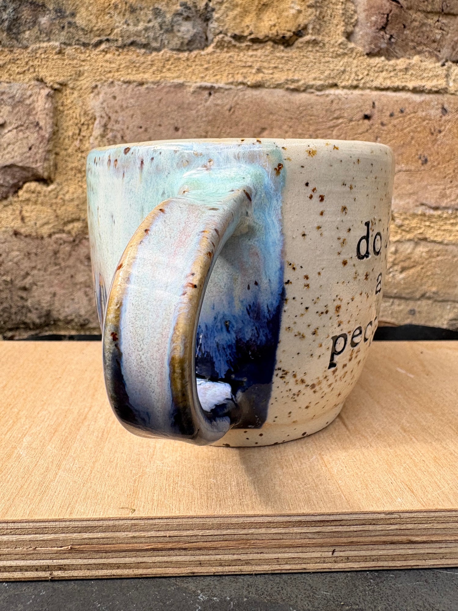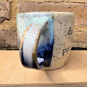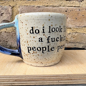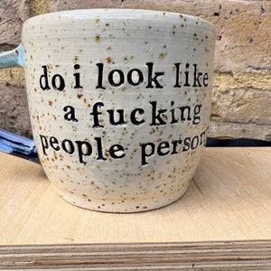 Wheelthrown mug imprinted with "do I look like a fucking people person?" on side