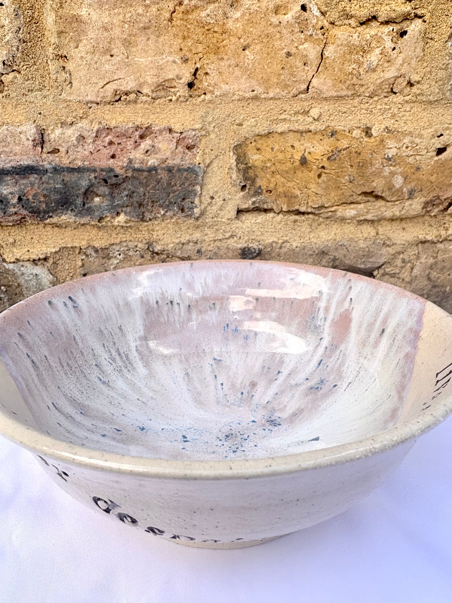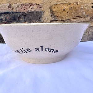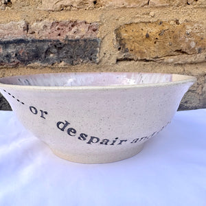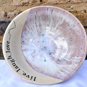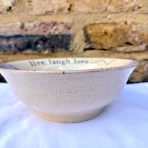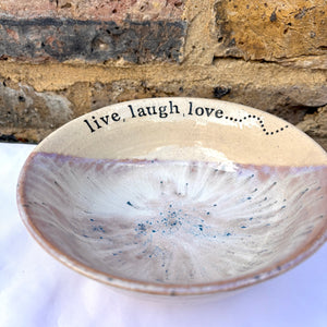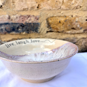 Wheelthrown bowl imprinted with: "live, laugh, love...or despair and die alone" bowl