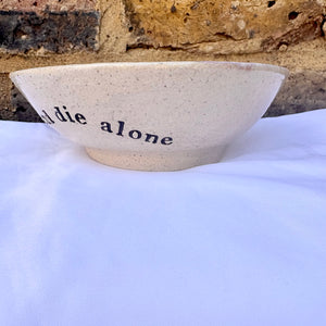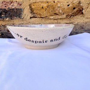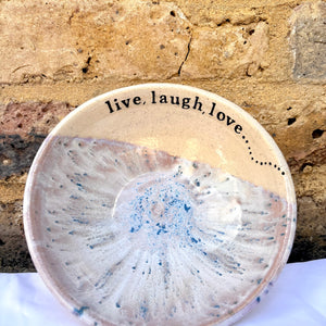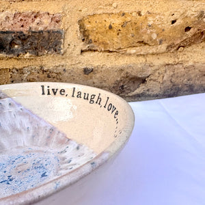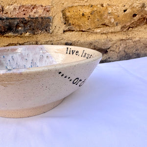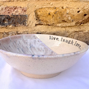 Wheelthrown bowl imprinted with: "live, laugh, love...or despair and die alone" bowl
