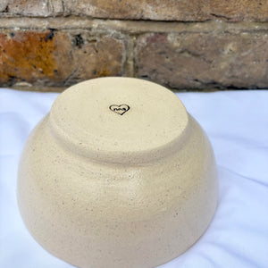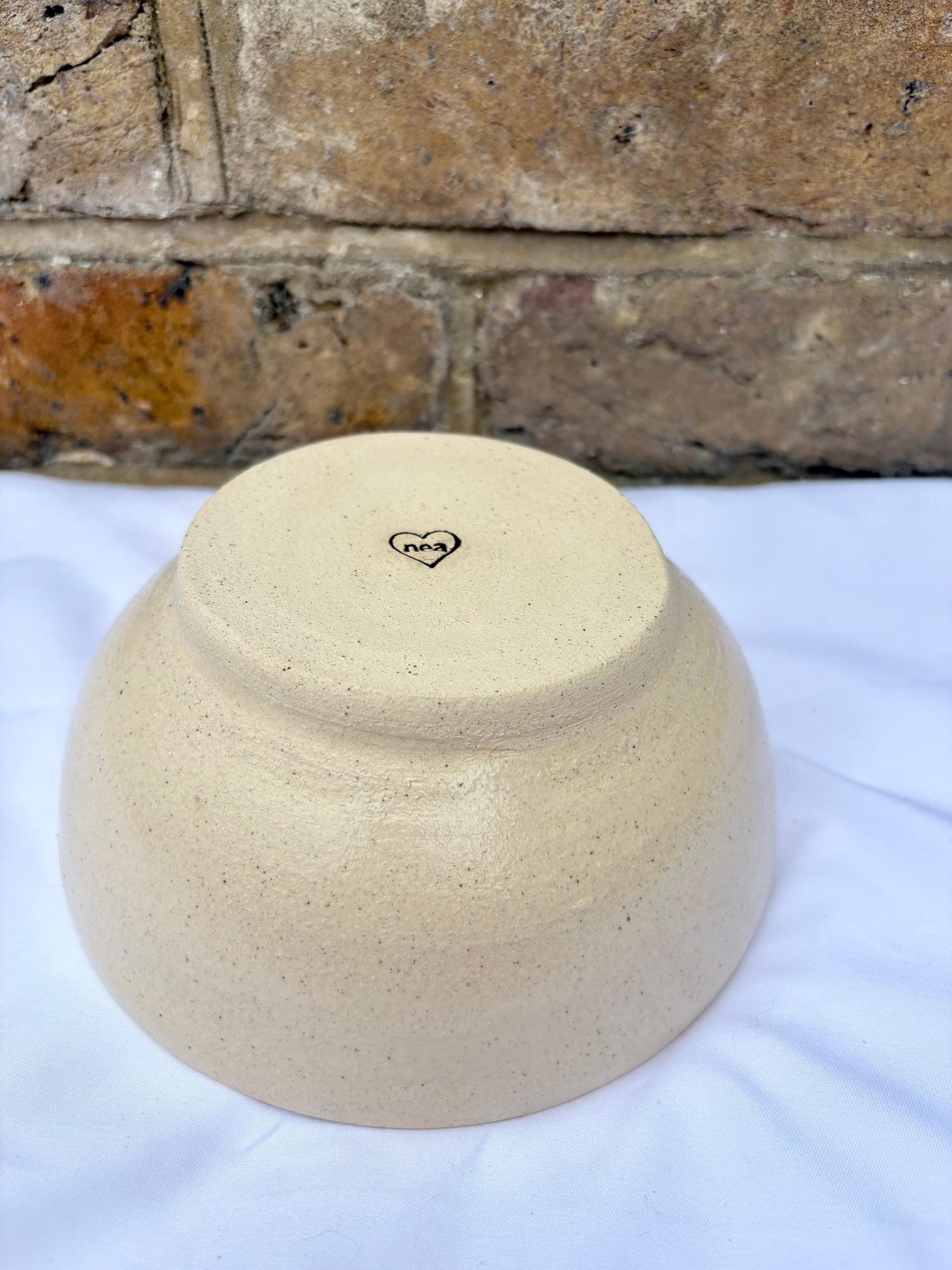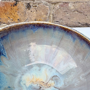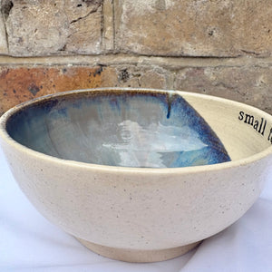 Made from toasty flecked stoneware clay and glazed in: lavender sky