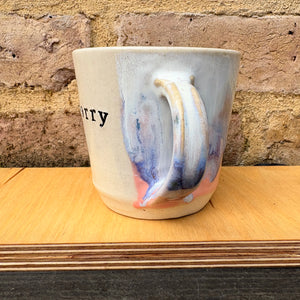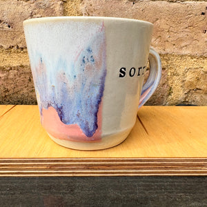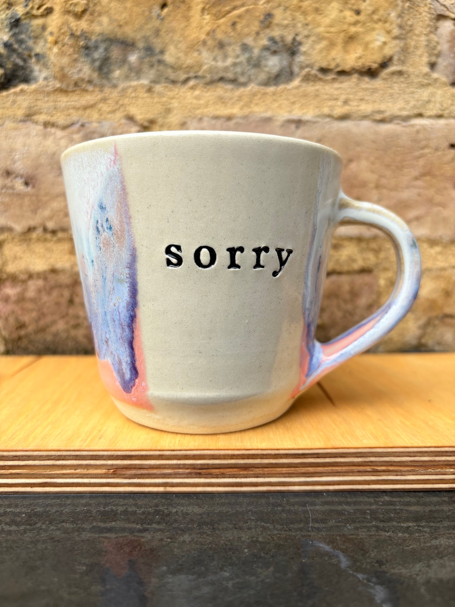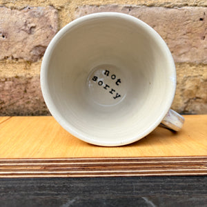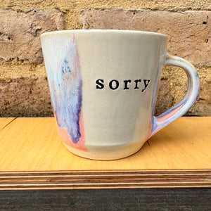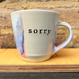 Gorgeous handmade wheelthrown "sorry” “not sorry” mug