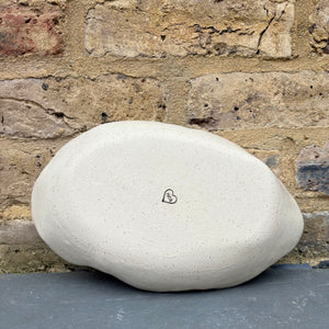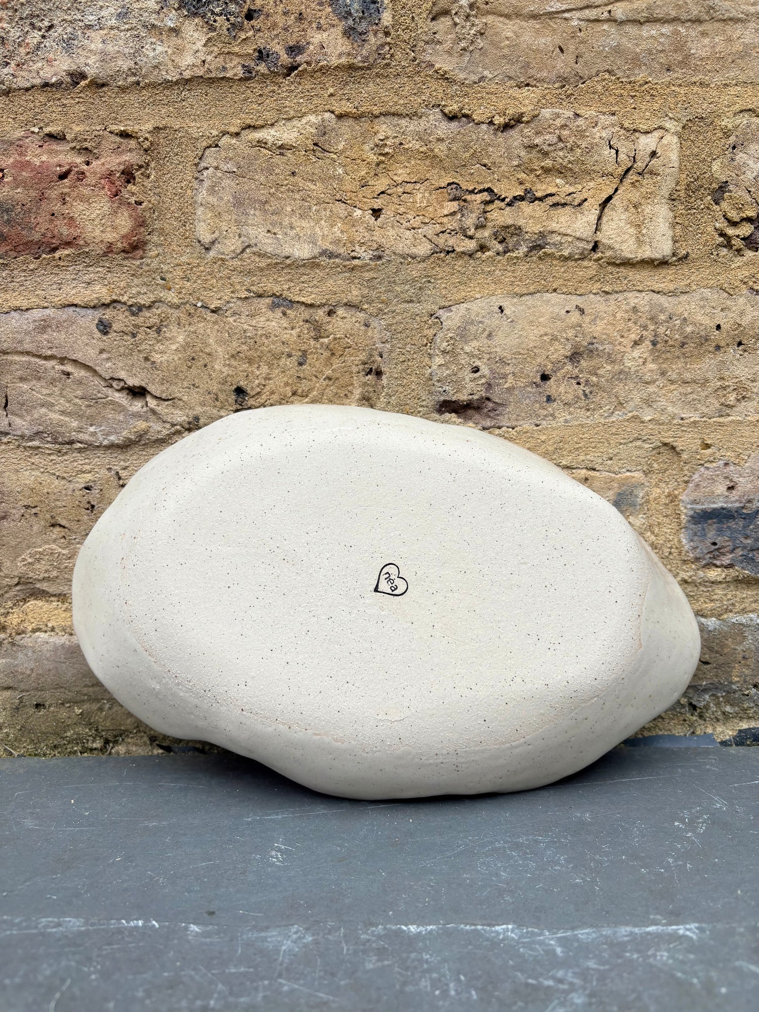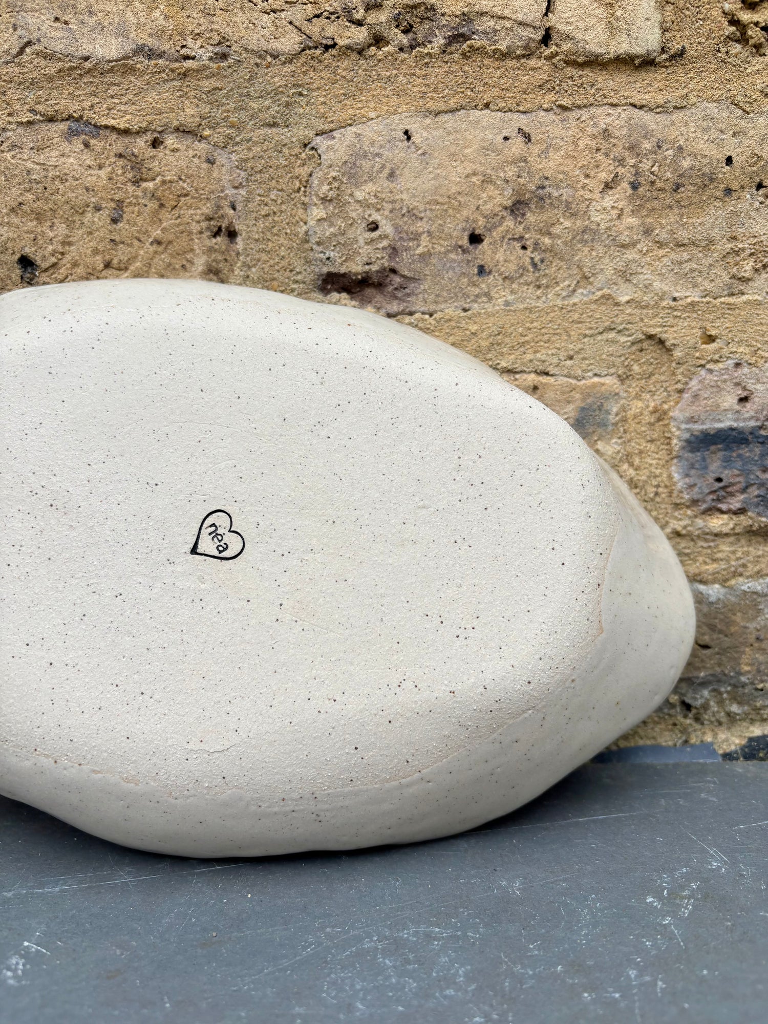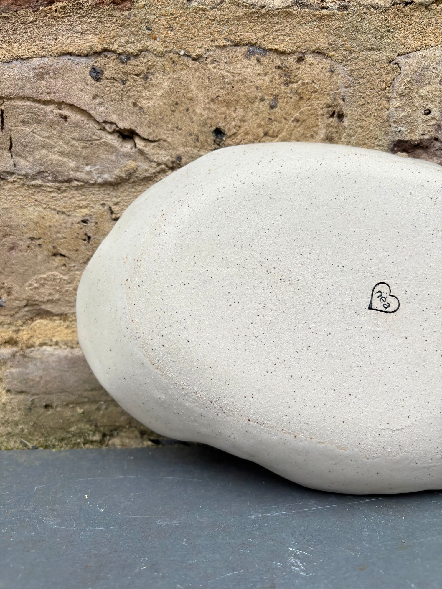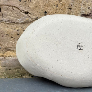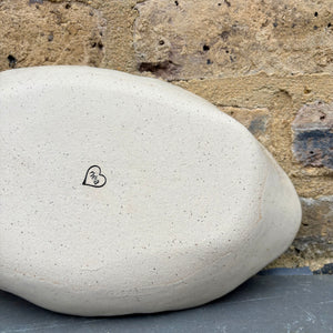 Handmade oval serving dish made with toasty flecked stoneware clay