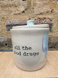 “all the good drugs" lidded pot (oyster blue)