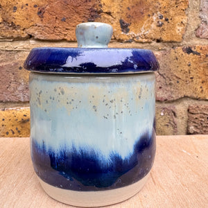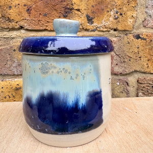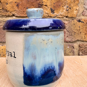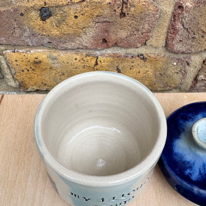 “my illegal drugs" lidded pot (blue night sky)