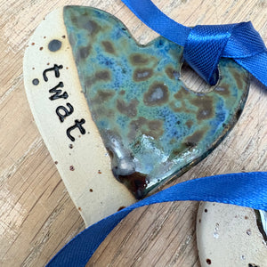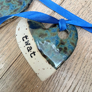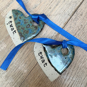 Heart shaped "Twat" hanging decoration
