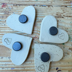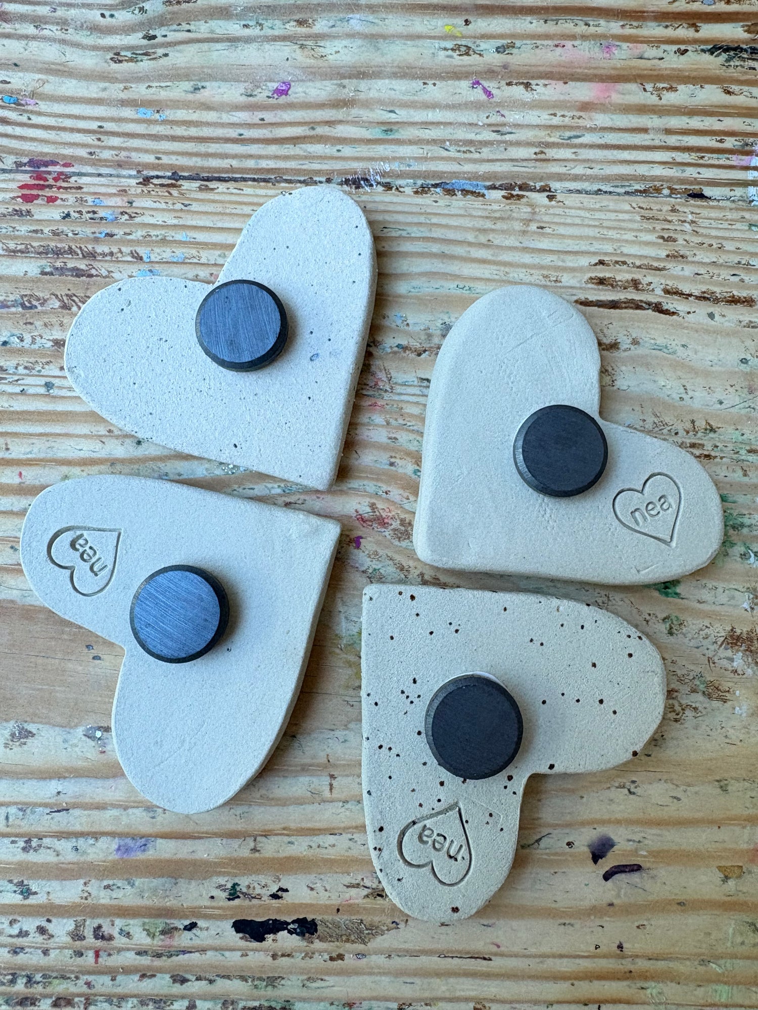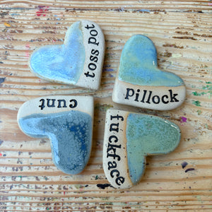 Set of 4 handmade sweary medium sized heart shaped magnets each imprinted with a rude insult