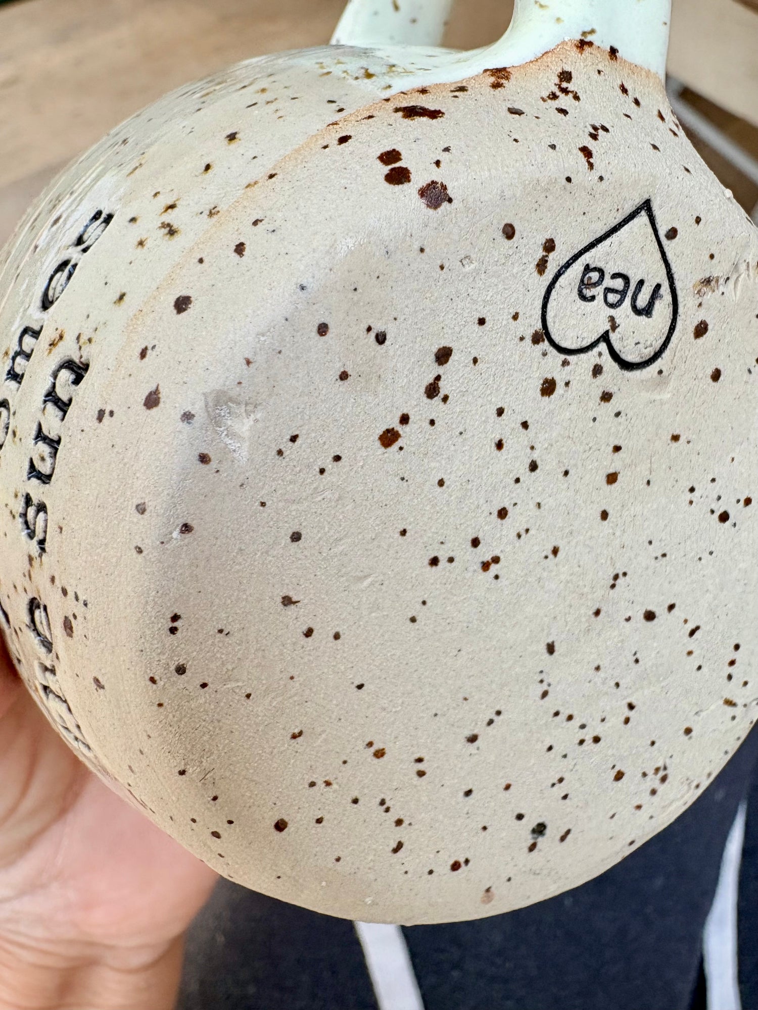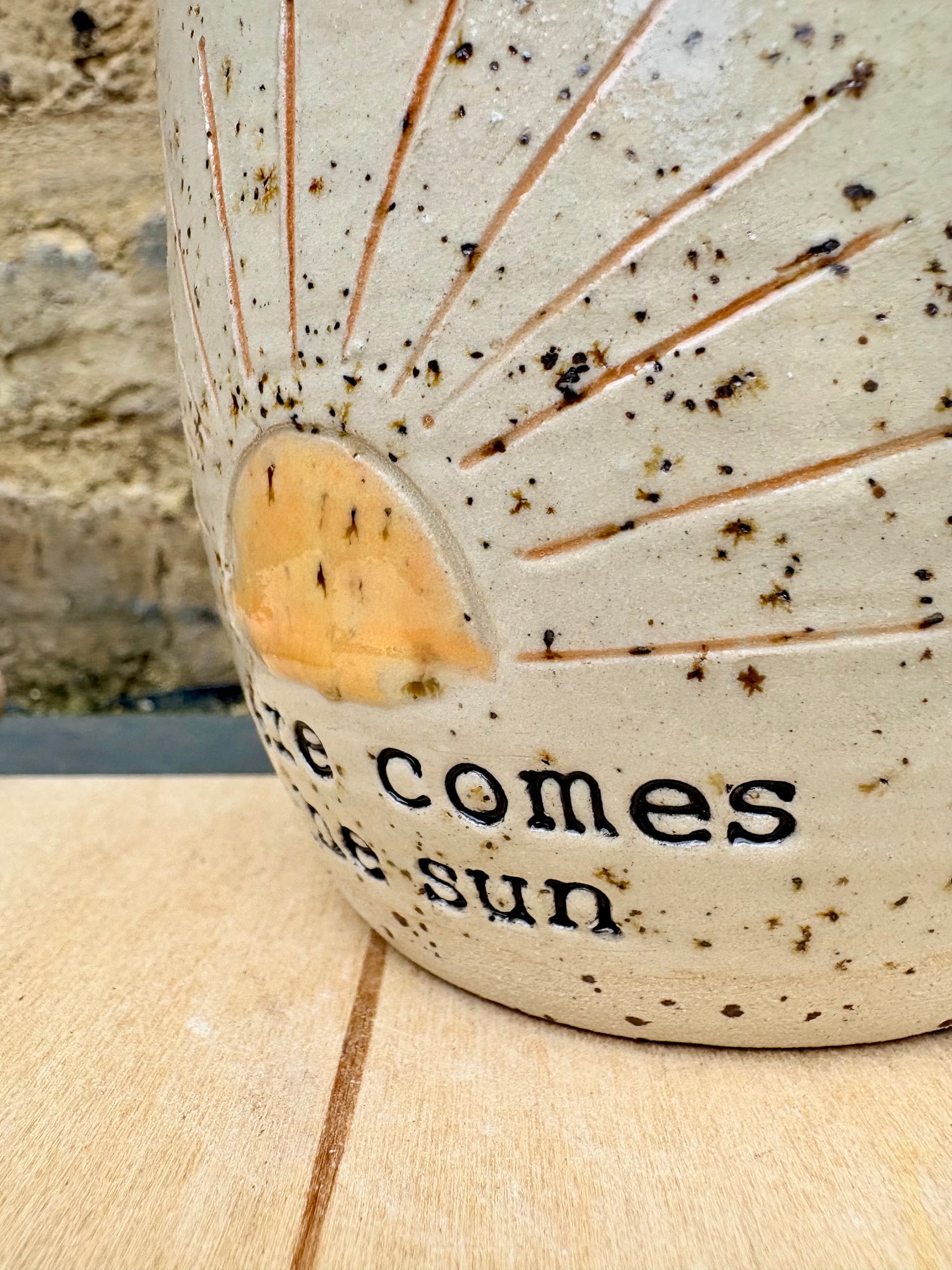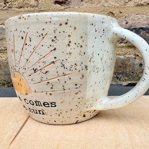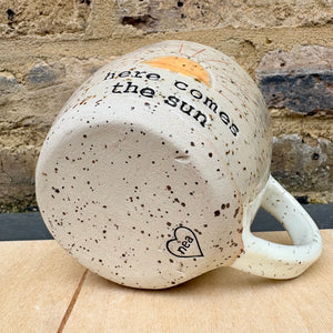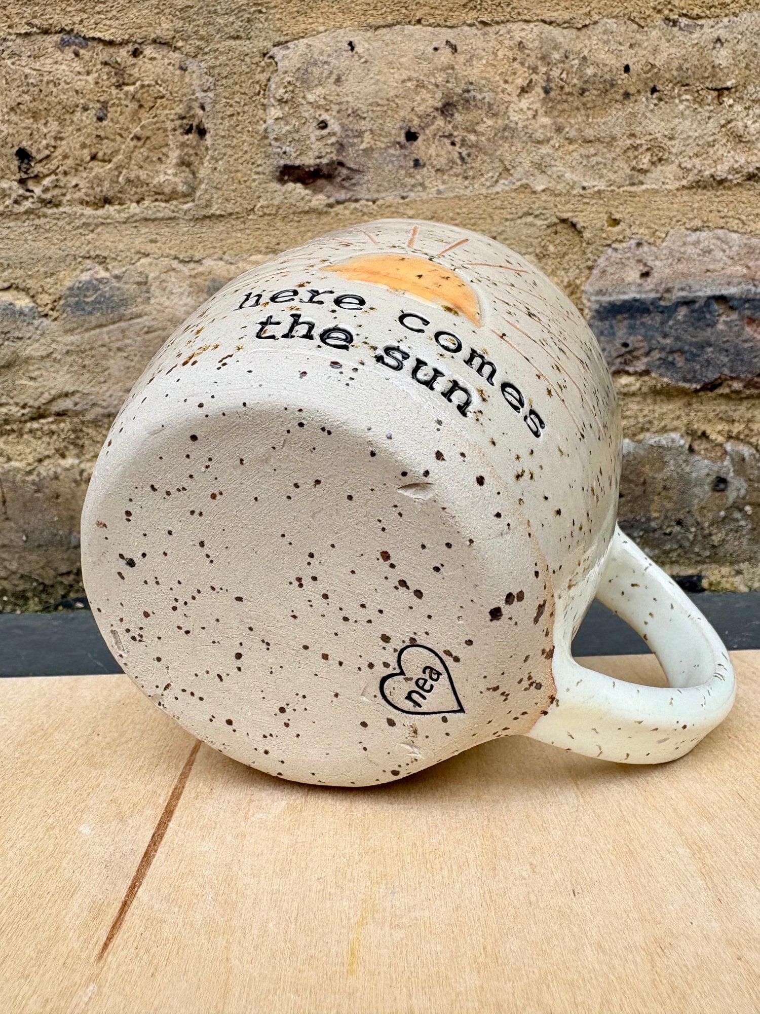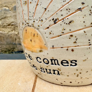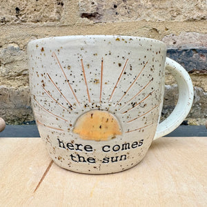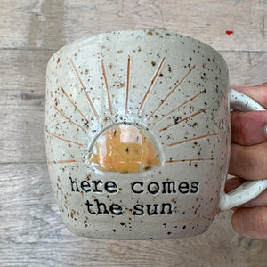 Gorgeous handmade wheelthrown "here comes the sun" mug