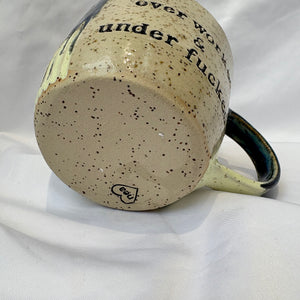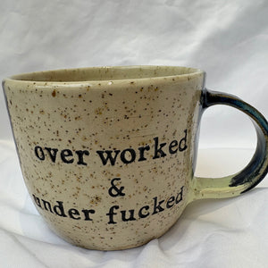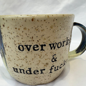 One of a kind, unique wheelthrown "overworked and underfucked” mug