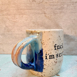 Imprinted on side with: "fuck off, i'm scrolling"