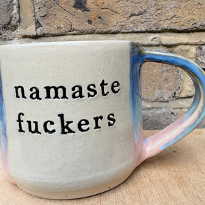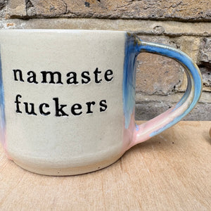 Gorgeous handmade wheelthrown "namaste fuckers" mug