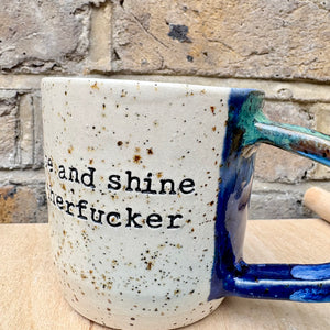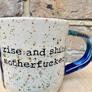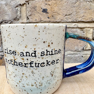 Gorgeous handmade wheelthrown "rise and shine motherfucker" mug