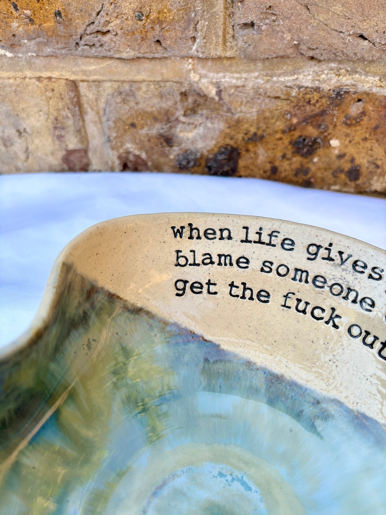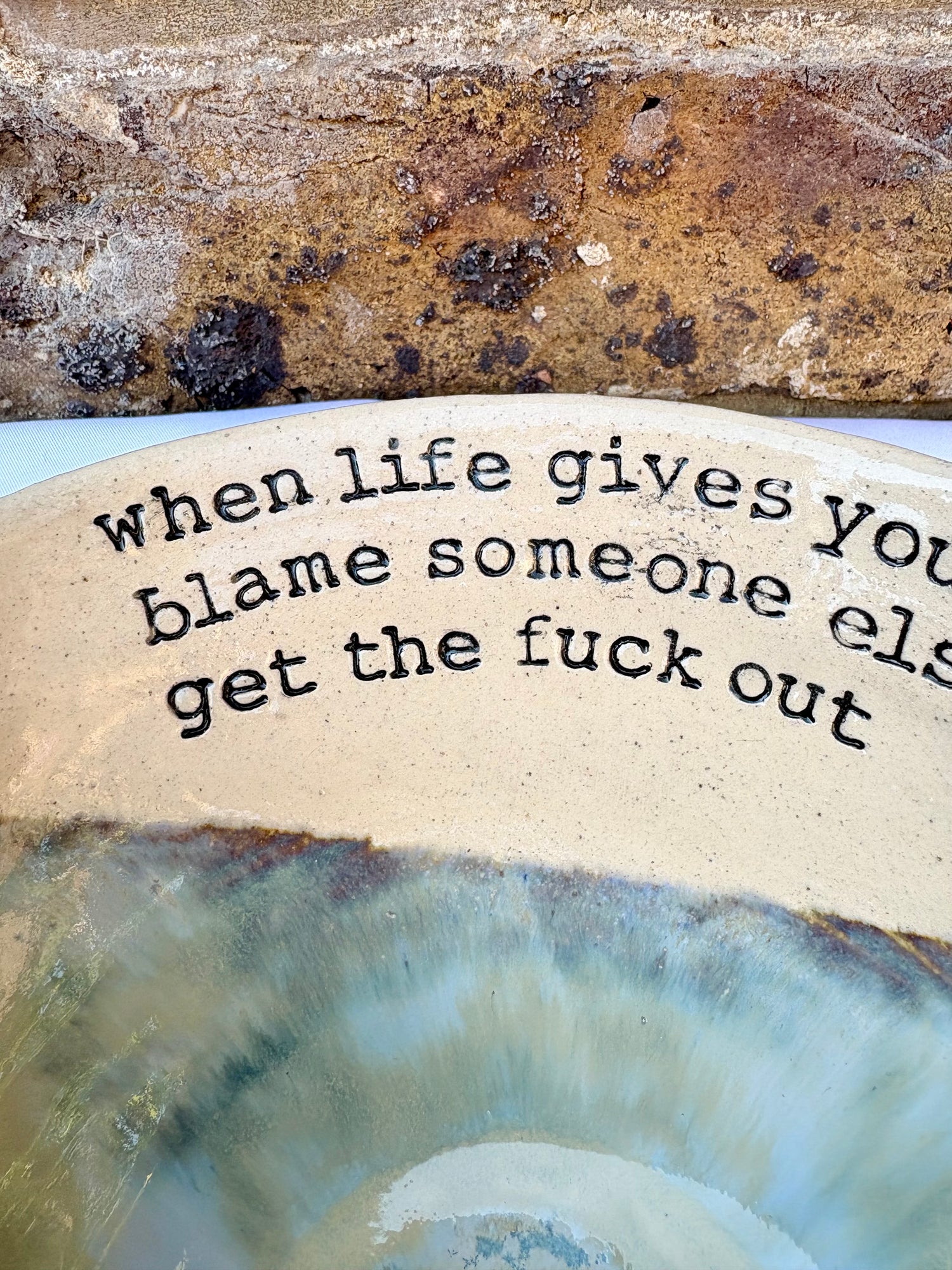 This handmade ceramic bowl features a relatable message to make the reader smile; it’s the perfect piece for your "fuck off" era