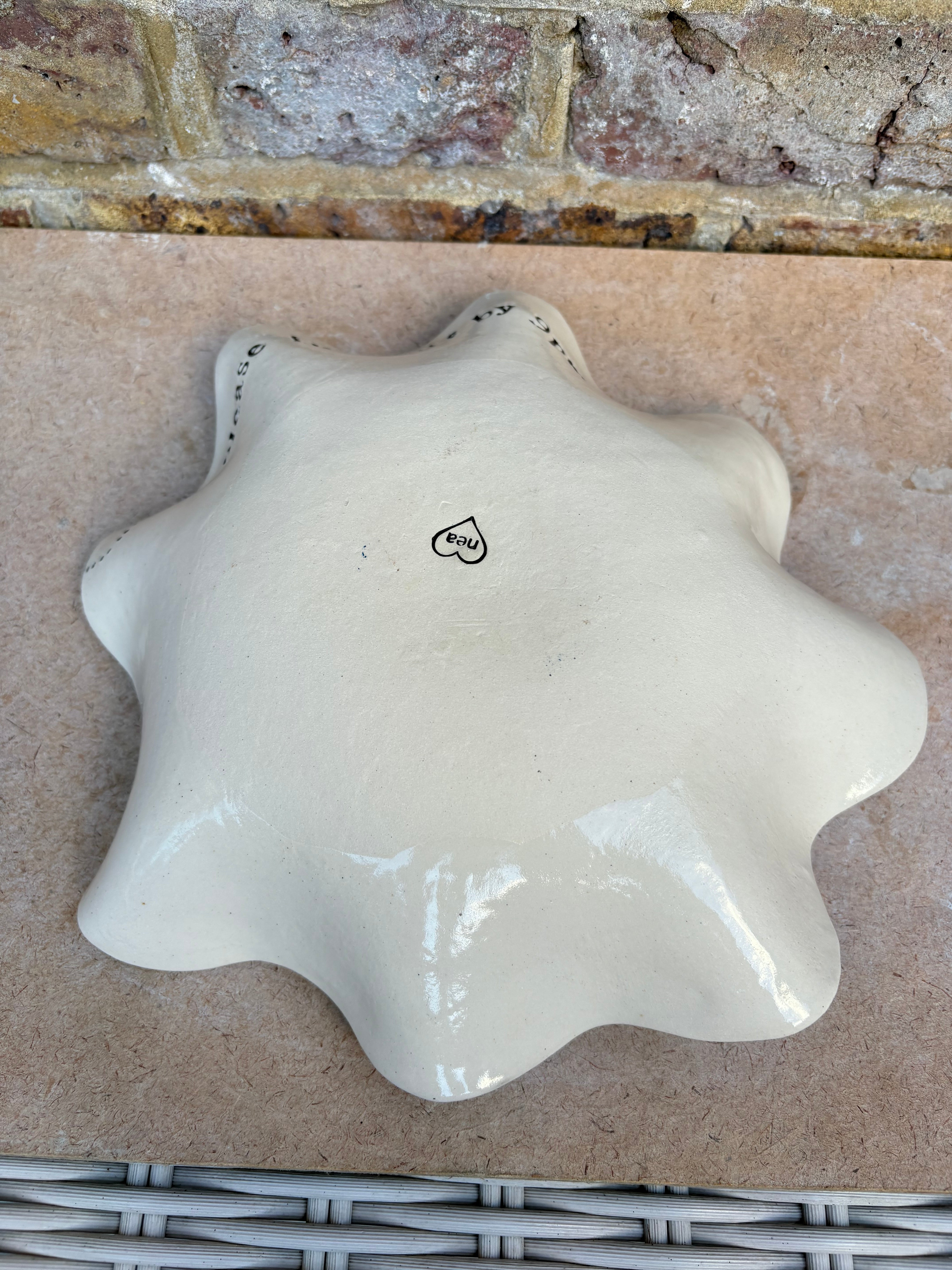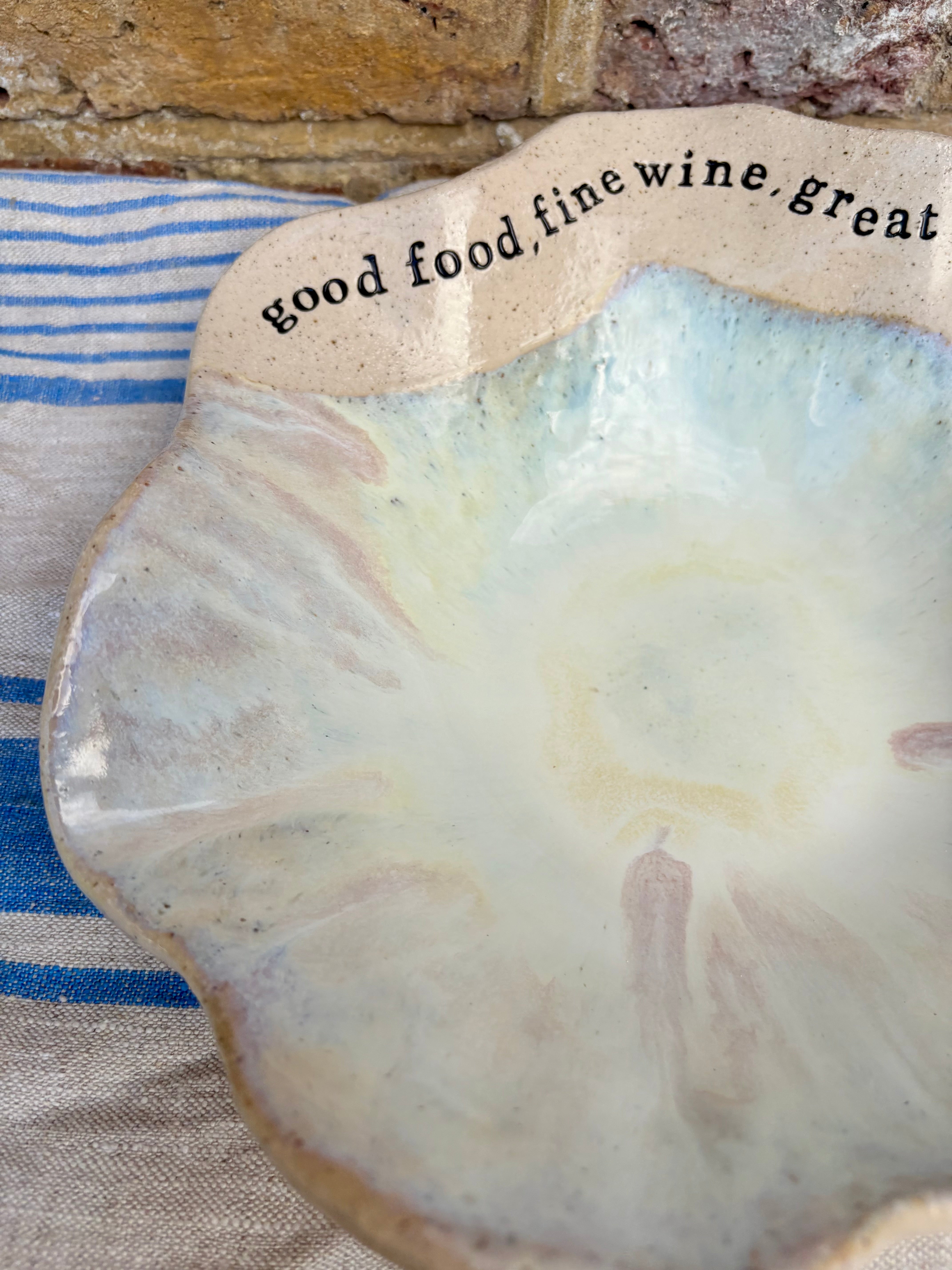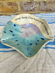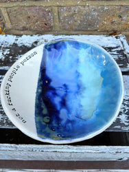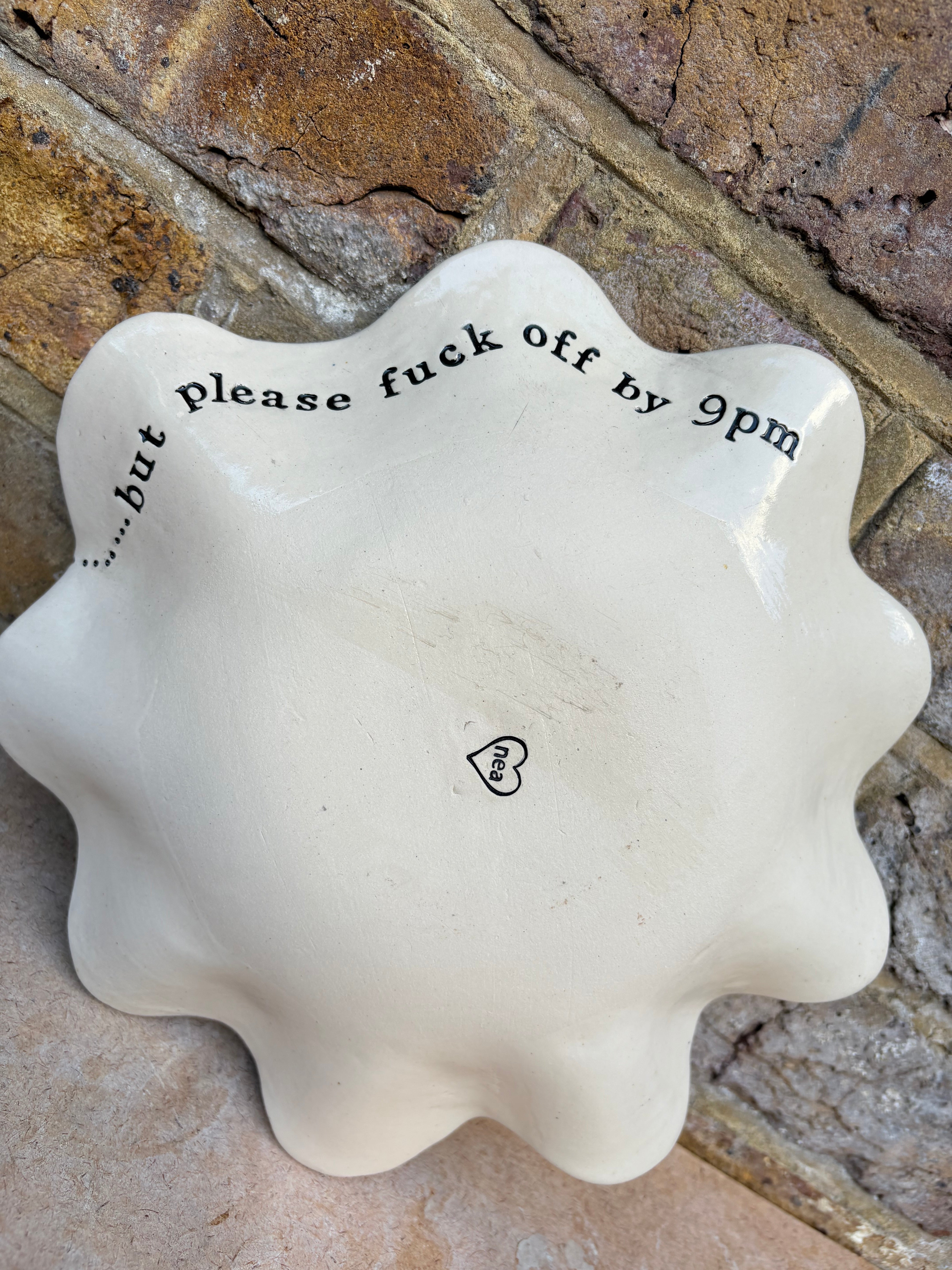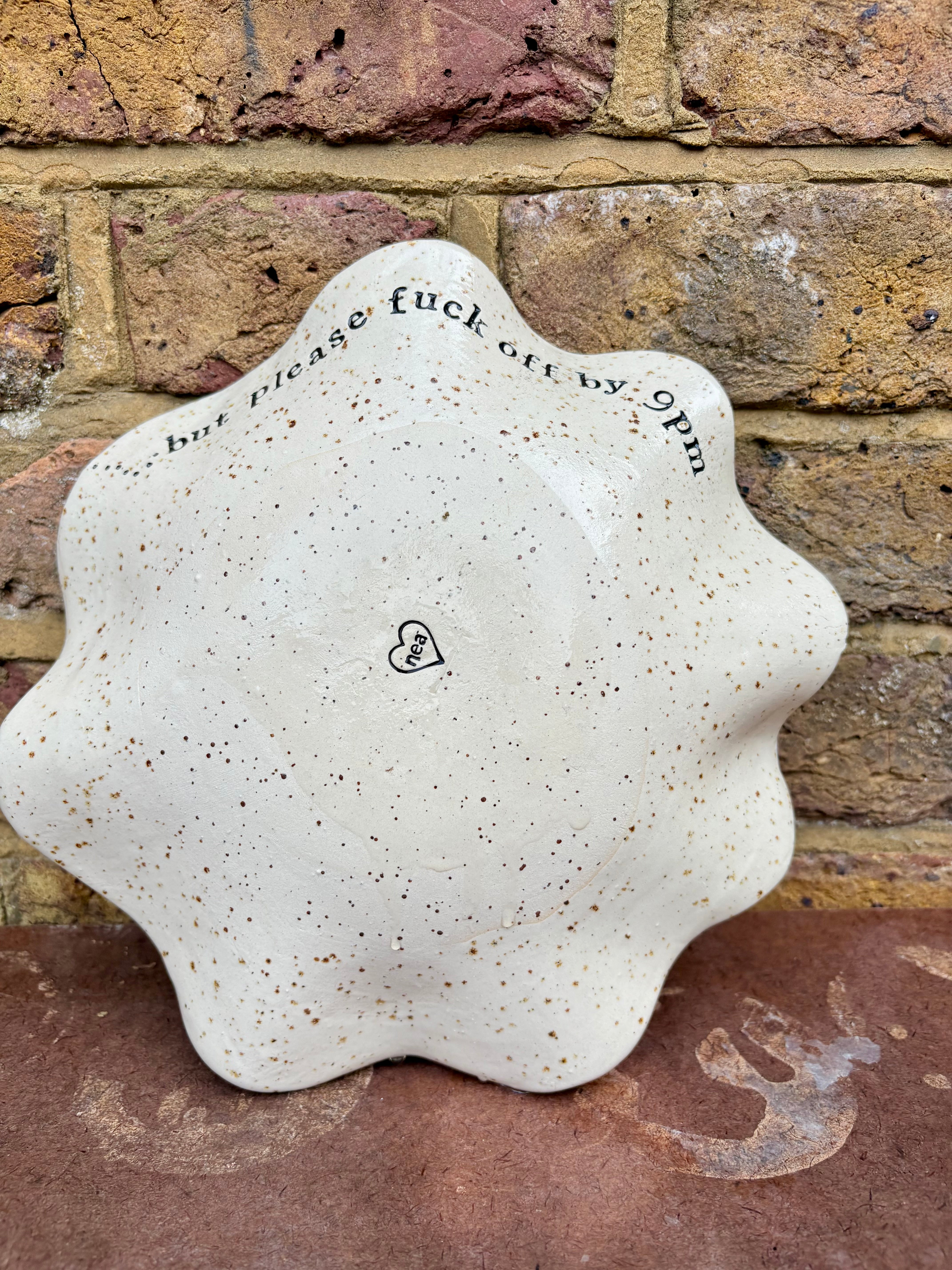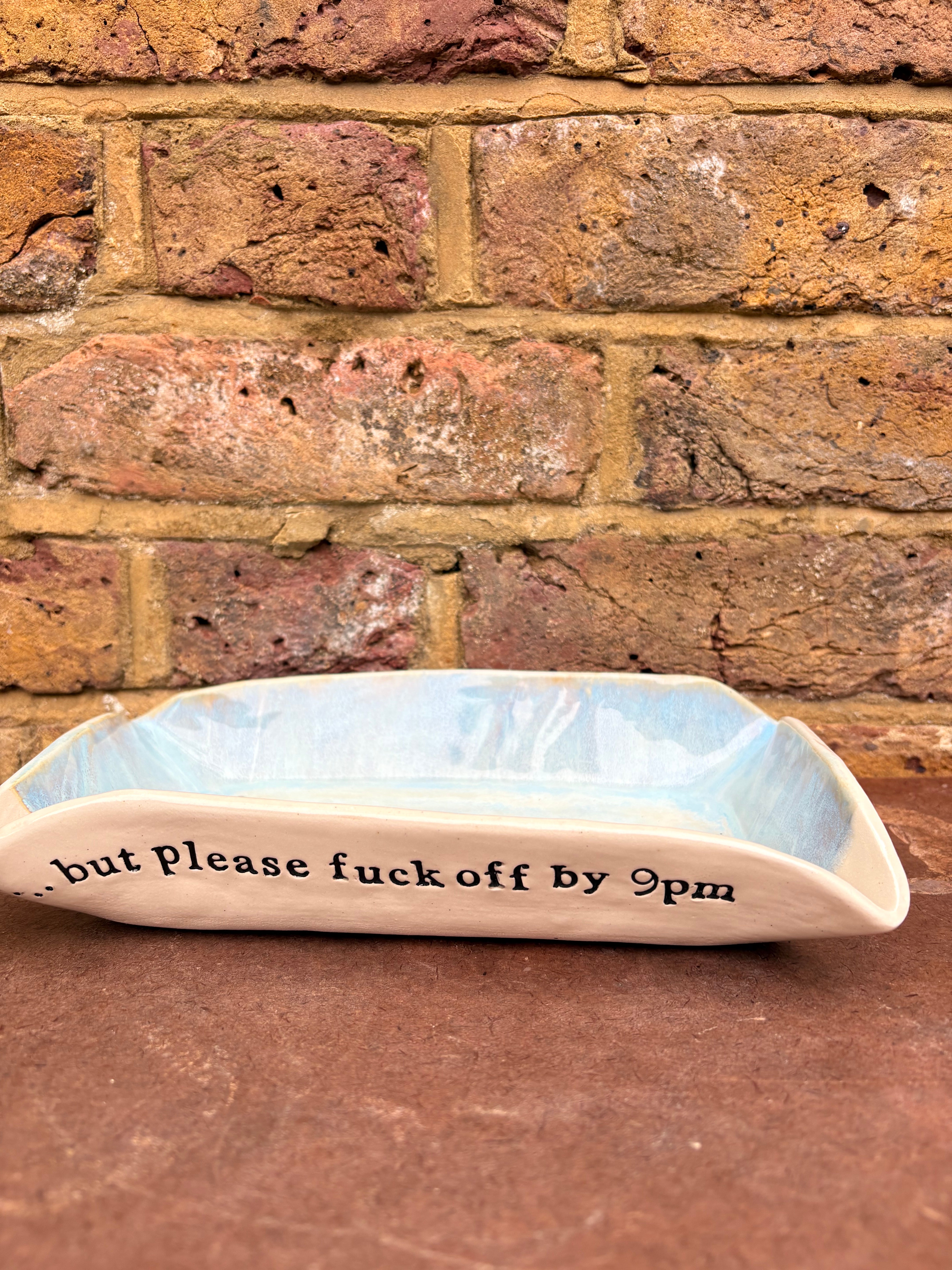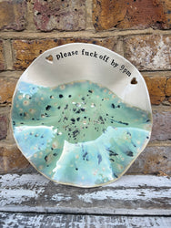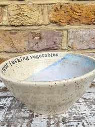 Handmade wheelthrown ceramic dishes imprinted with all the swears to make you laugh every time you use it (don't look here if swearing offends you; you will offended)