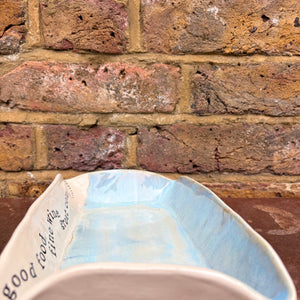 This handmade ceramic dish features a relatable message to make the reader smile; it’s the perfect piece for your "early nights" era (and to make over-staying-their-welcome guests leave)