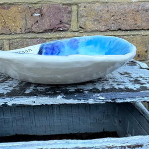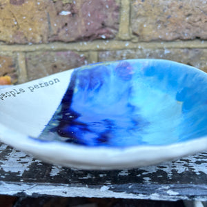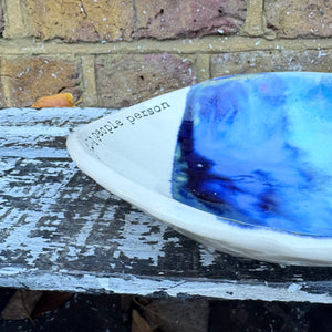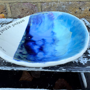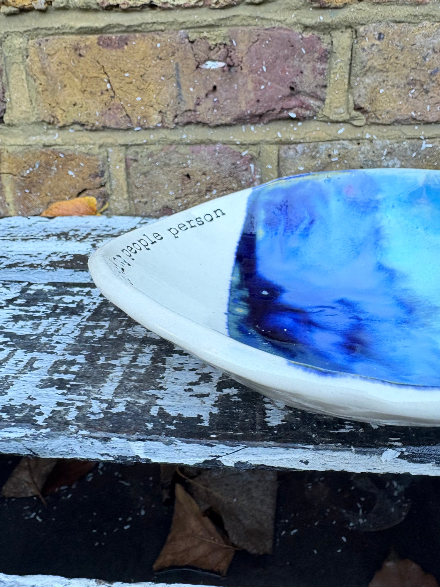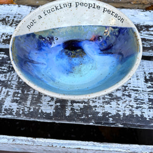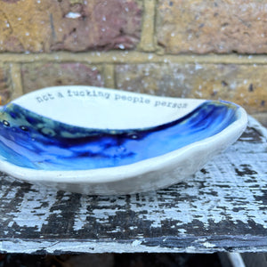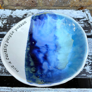 Wheelthrown side plate imprinted with "not a fucking people person" on rim