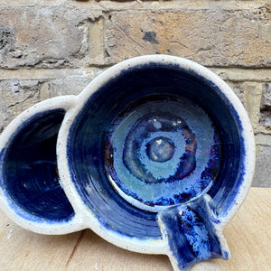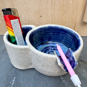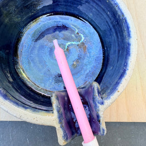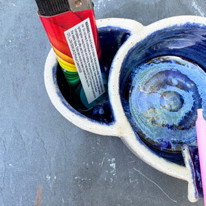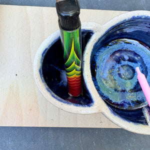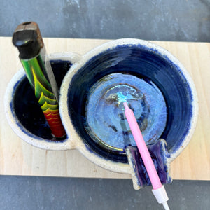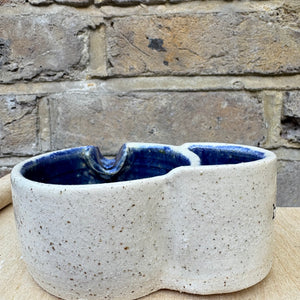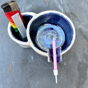 Handmade ashtray with holder for lighter and smoke rest.