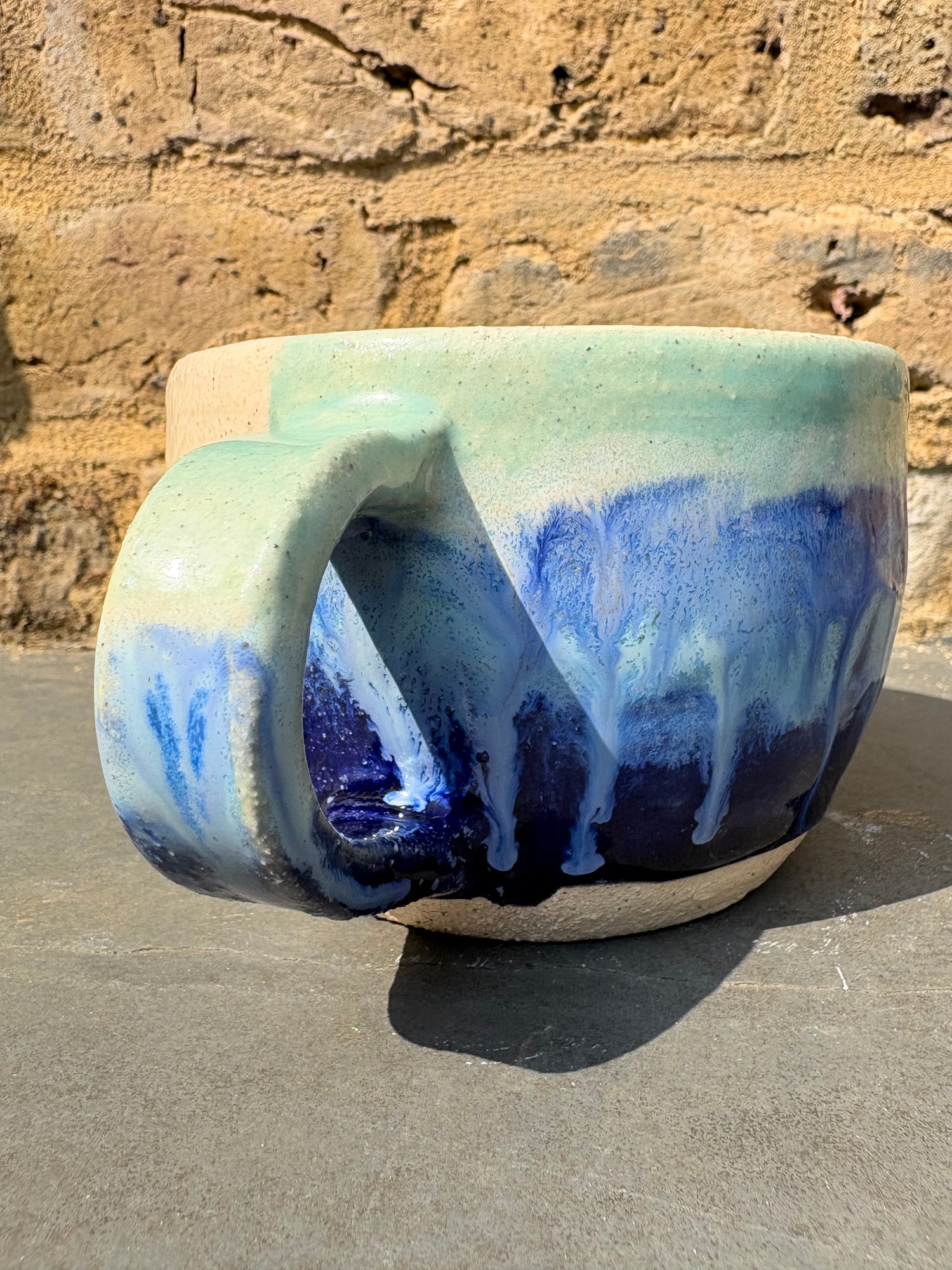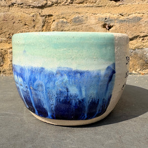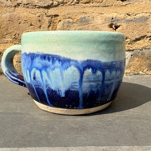Hand glazed with light and dark blue