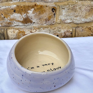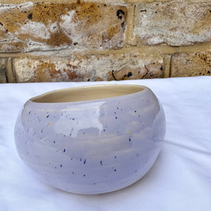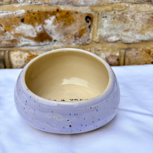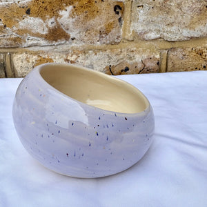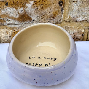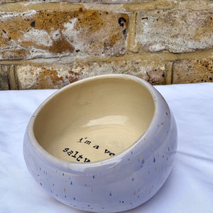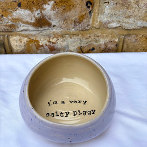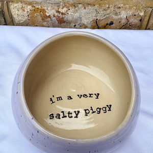 "I'm a very salty piggy" Salt Pig (wheelthrown, lilac speckle glaze)