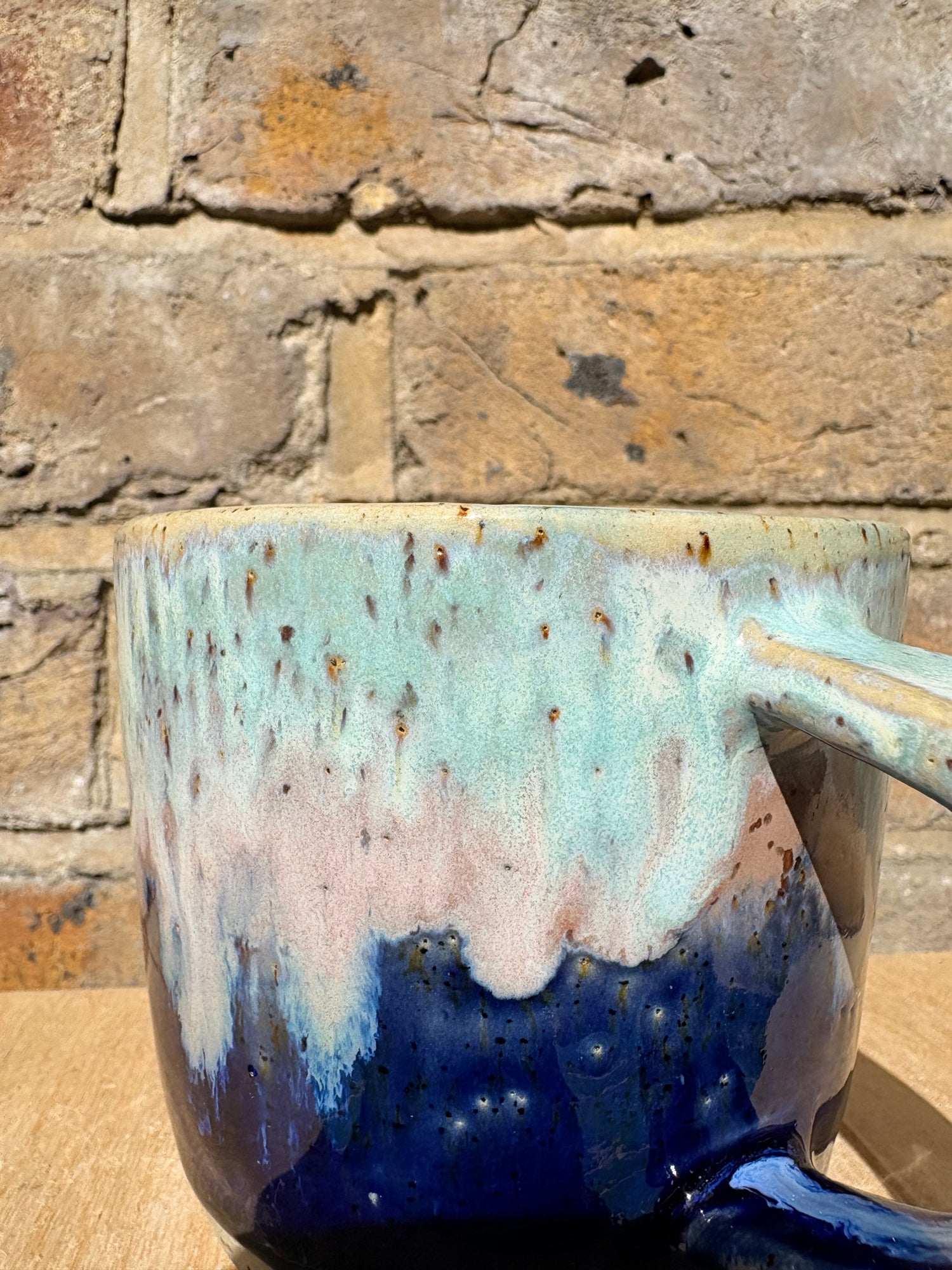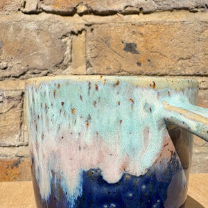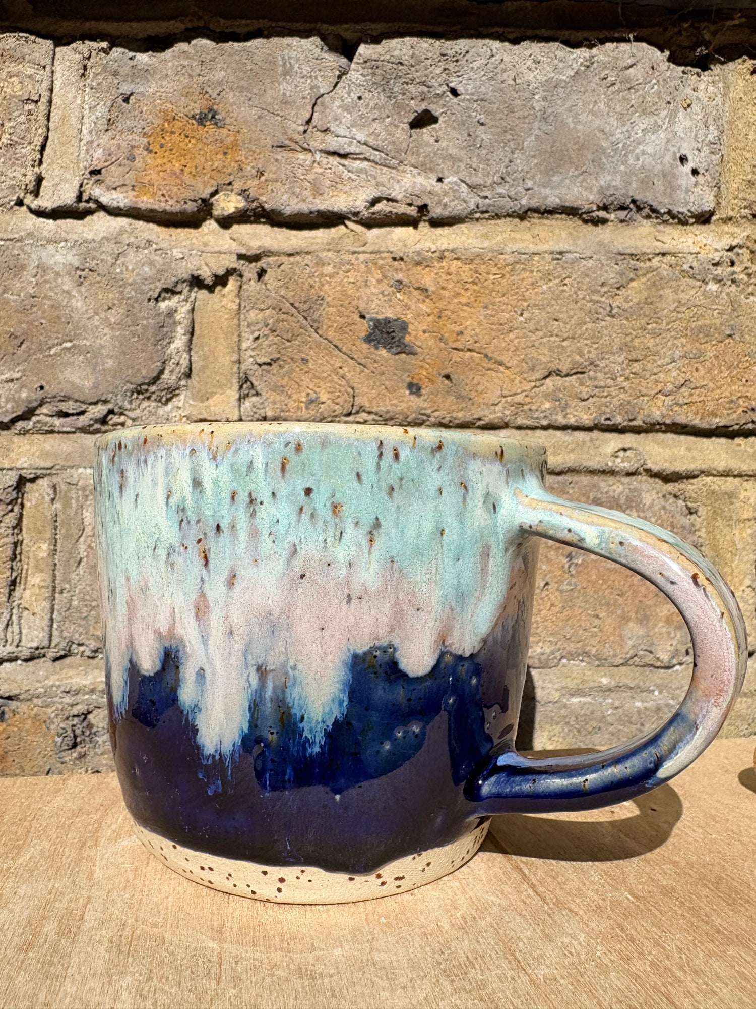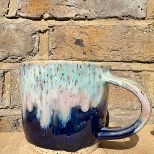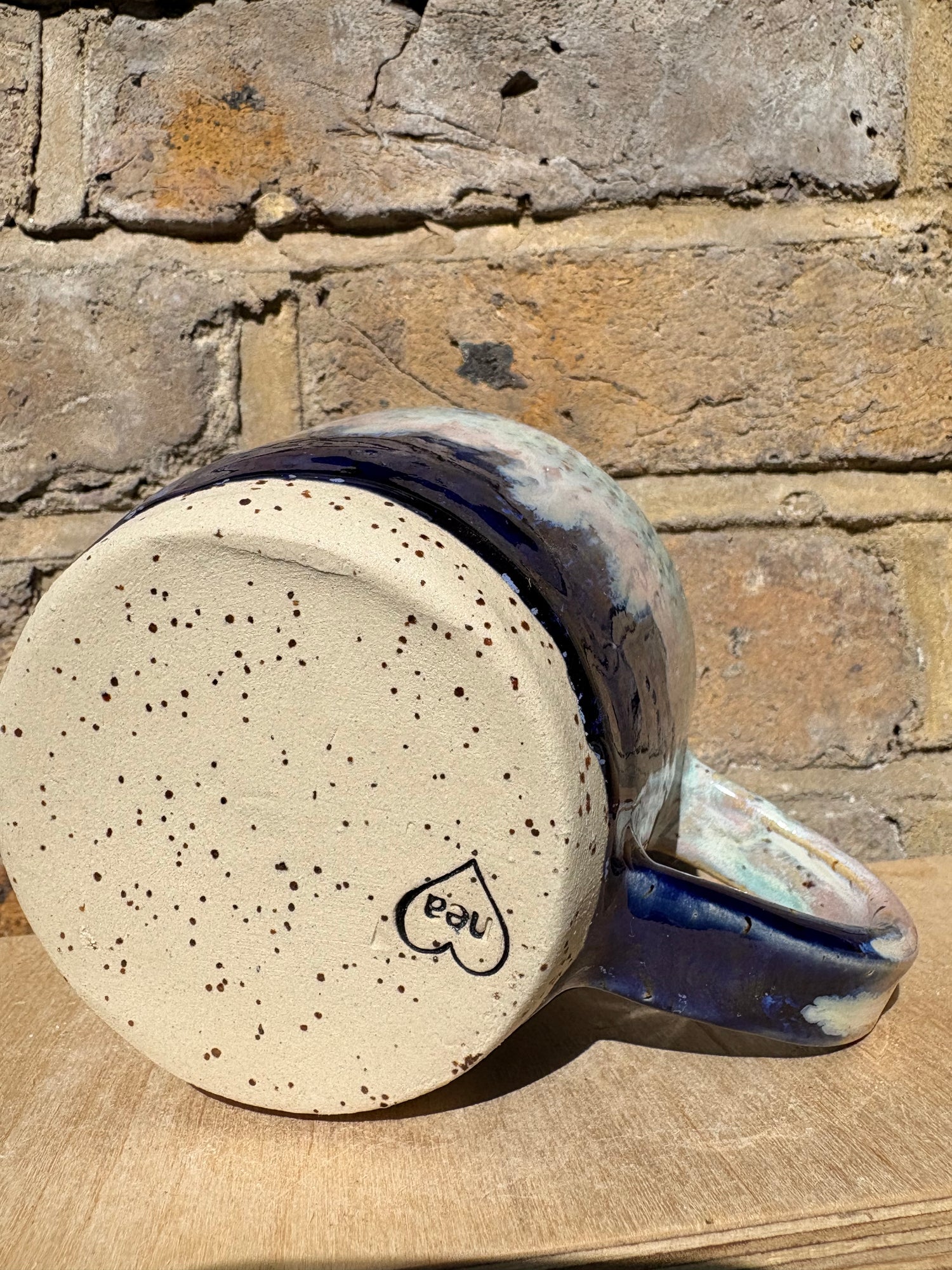 Wheelthrown mug imprinted with "shhh...until i finish this" on side