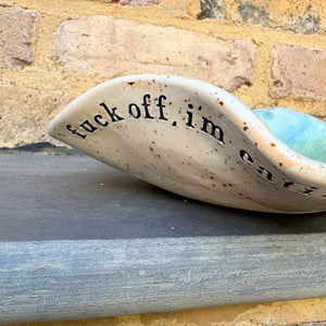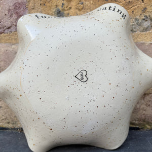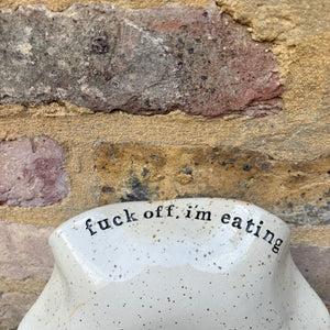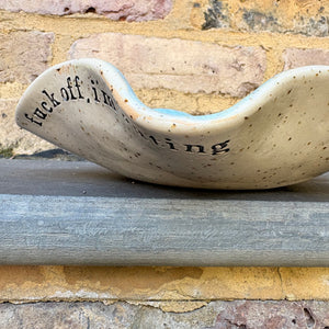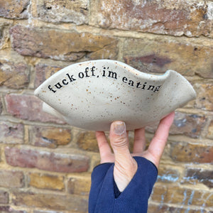 This handmade ceramic dish features a relatable message to make the reader smile. Because sometimes you don't want to eat around the table with the family making dinner conversation, sometimes you just want to eat your food, on your own, in silence, with interruptions 🤣